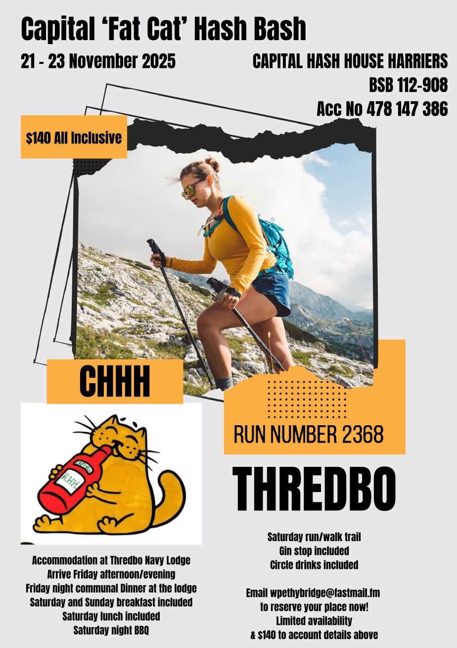 Cost : $10 for a drink stop, food after the circle and about 2 hours of hash bucket